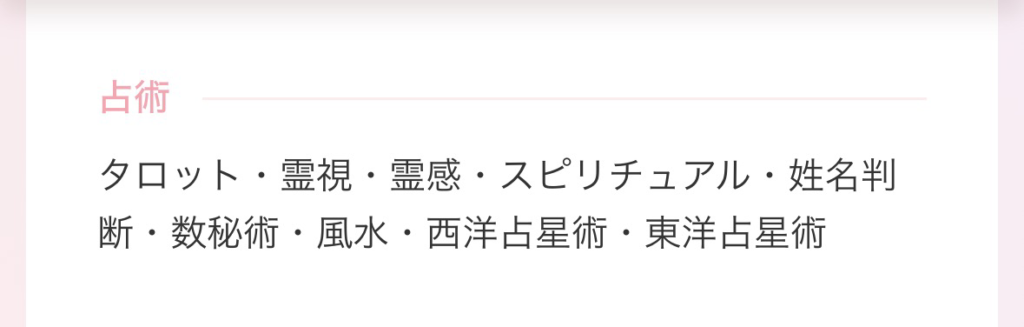 ヴェルニの各先生のプロフィールには、使用する占術が記載されています。「タロット」が明記されている先生を選びましょう。