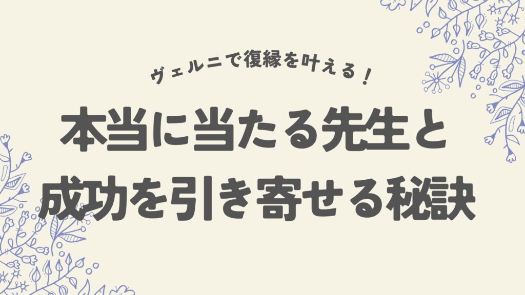 ヴェルニで復縁を叶える!本当に当たる先生と成功を引き寄せる秘訣